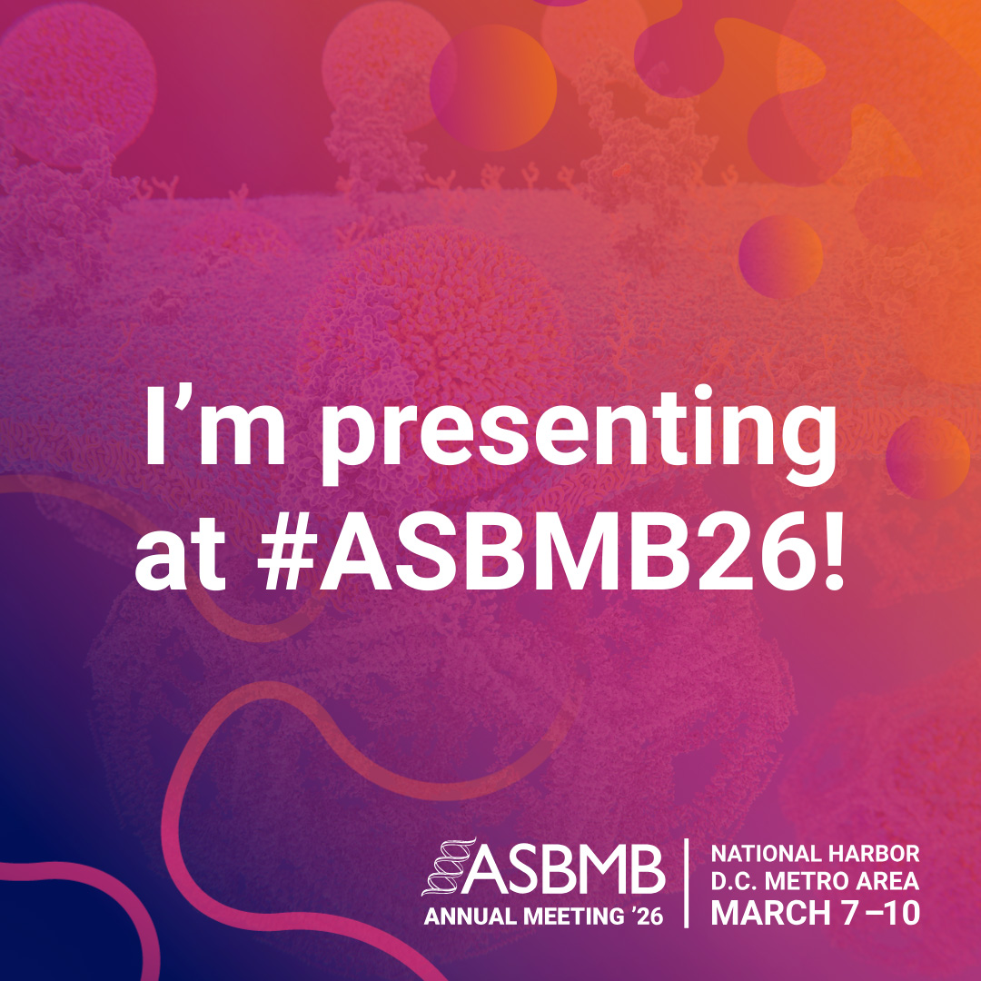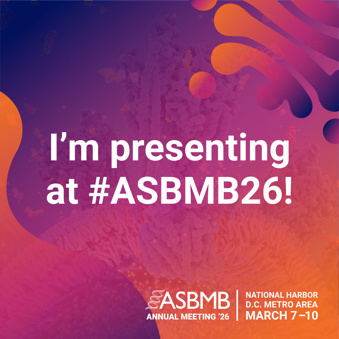 I’m presenting my work on _____ at #ASBMB26 and seeking collaborators. Drop by my poster to learn more and share about your work — together we can make future discoveries and applications possible!