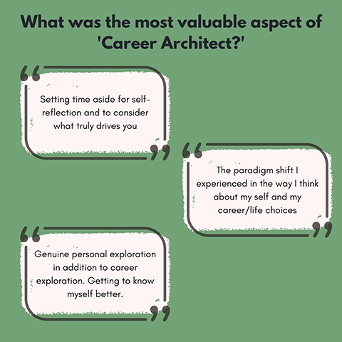 myIDP and the Career Architect program both address all stages of this process, from thinking deeply about your life and where you get meaning and happiness, through how to put this new self-knowledge into practice. This deep approach complements broad events such as career fairs, which can introduce students to potential career options.