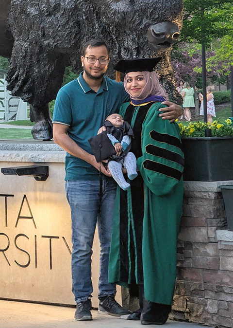 That encouragement carried Safain from Bangladesh to a career at the forefront of nutritional research. She recently completed her Ph.D. in cell and molecular biology at North Dakota State University, where she studied how maternal nutrition shapes livestock development and health outcomes.