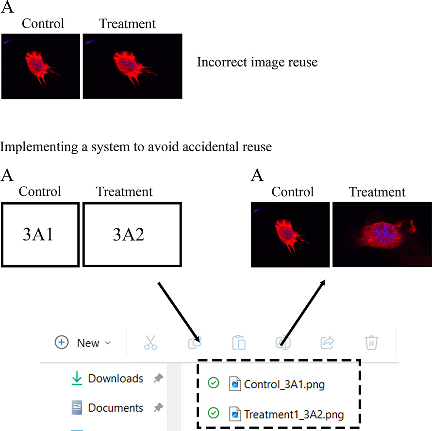 As illustrated below, it may help to design figures in advance and assign each panel a serial number that appears in the image filename. If accidental reuse persists, authors may want to use image‑analysis software to screen figures before submission.